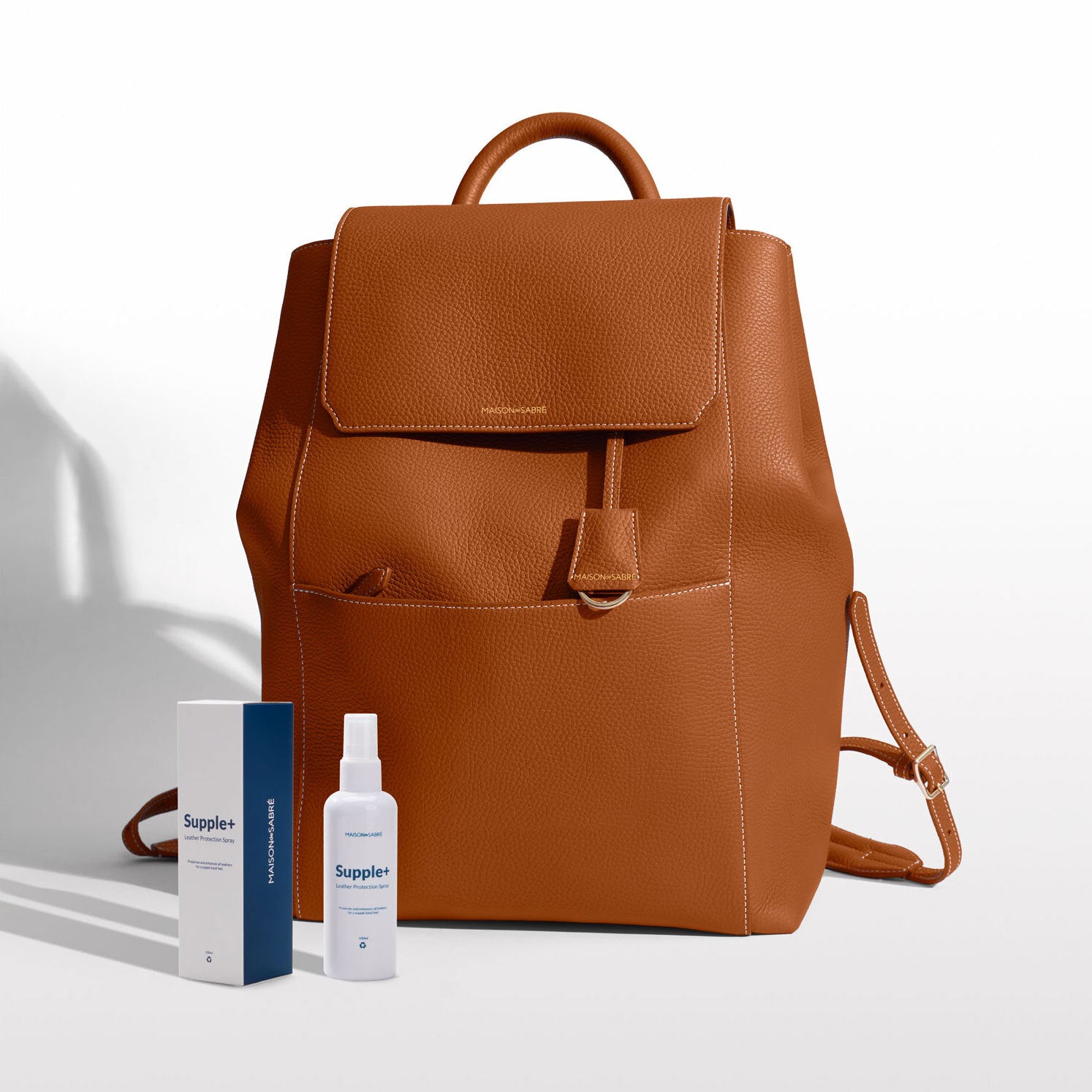 Keep leather away from moisture, water and direct heat. Avoid overfilling your companion — excessive bending or stretching can cause leather to crack or lose its original silhouette. Handle leather gently and avoid contact with sharp surfaces or large jewellery items. Shield with an umbrella in wet weather as wet leather requires more detailed care. Use a leather protectant spray to repel water and stains.