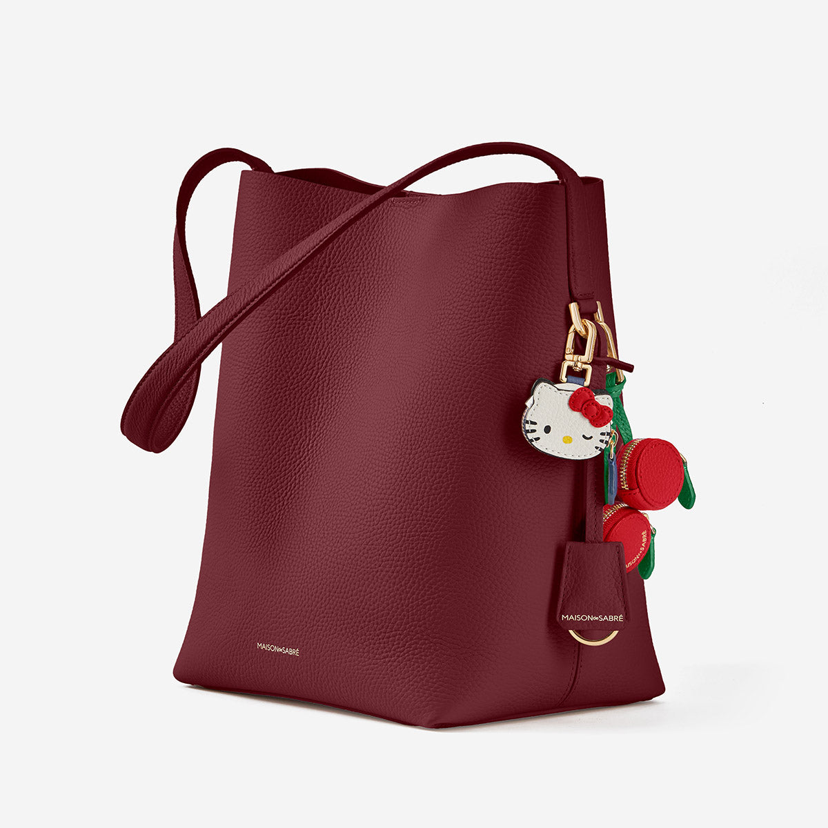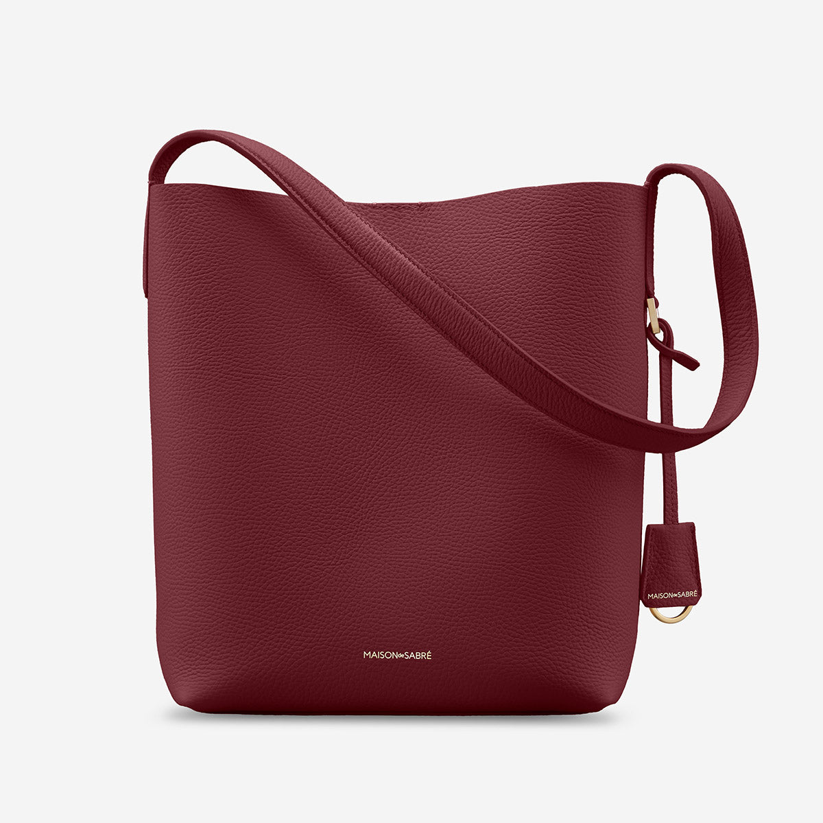 I love my bucket tote! It is the perfect in-between size that works for day or evening. The plum color is beautiful and different. The leather is soft and light, the contrasting interior accents make it easy to find what I’m looking for. The attachment ring for charms is the perfect finishing touch!