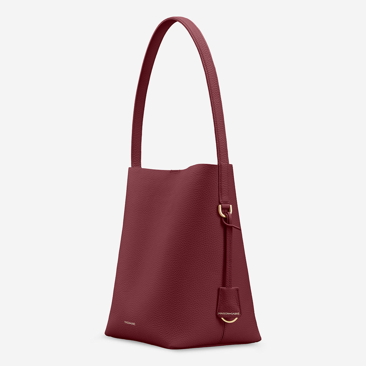 A lightweight, medium sized tote, inspired by the classic drawstring bucket bag. The slouchy design is crafted entirely from our softest-ever full-grain European leather and features a spacious, reinforced base panel for enhanced storage. Perfected for business-to-leisure, with space to stow laptop devices up to 14", the elevated companion is fitted with three slip pockets, one zipped pocket and a dedicated keyclip, while an elongated and padded shoulder strap ensures comfortable all-day carry. External statement hardware invites secure SABRÉMOJI™ Charm attachment to create expressive statements, while bold dual-tone colourways spark playful exuberance with every opening. The world’s most refined everyday carry-all has arrived.