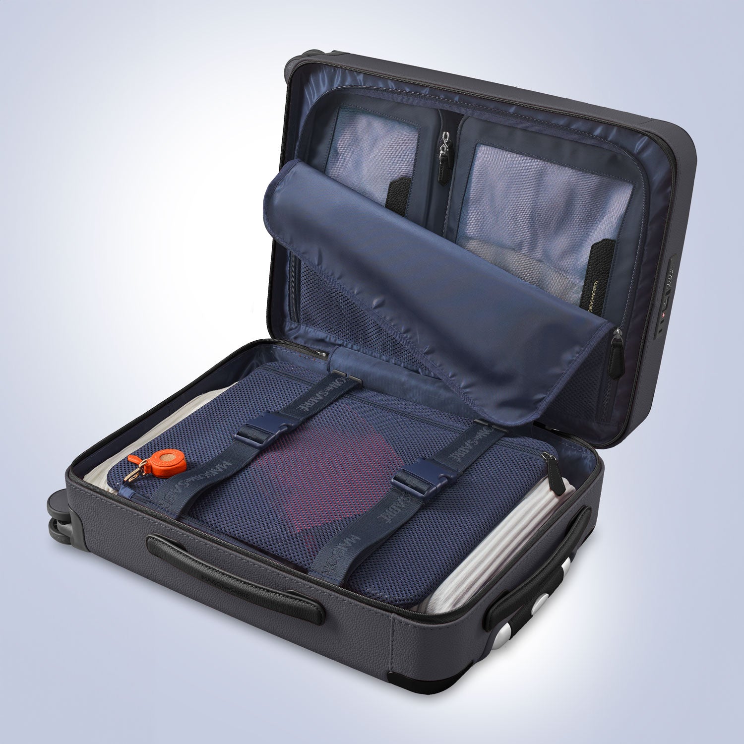 - Four internal pockets: two mesh slips, one full-length mesh slip and one hinge pouch for cables and small valuables