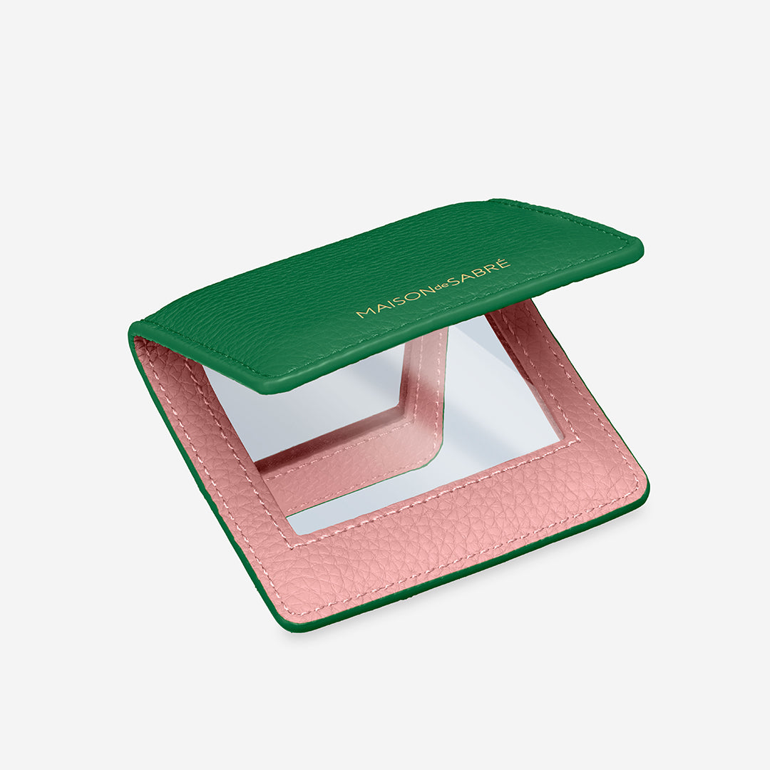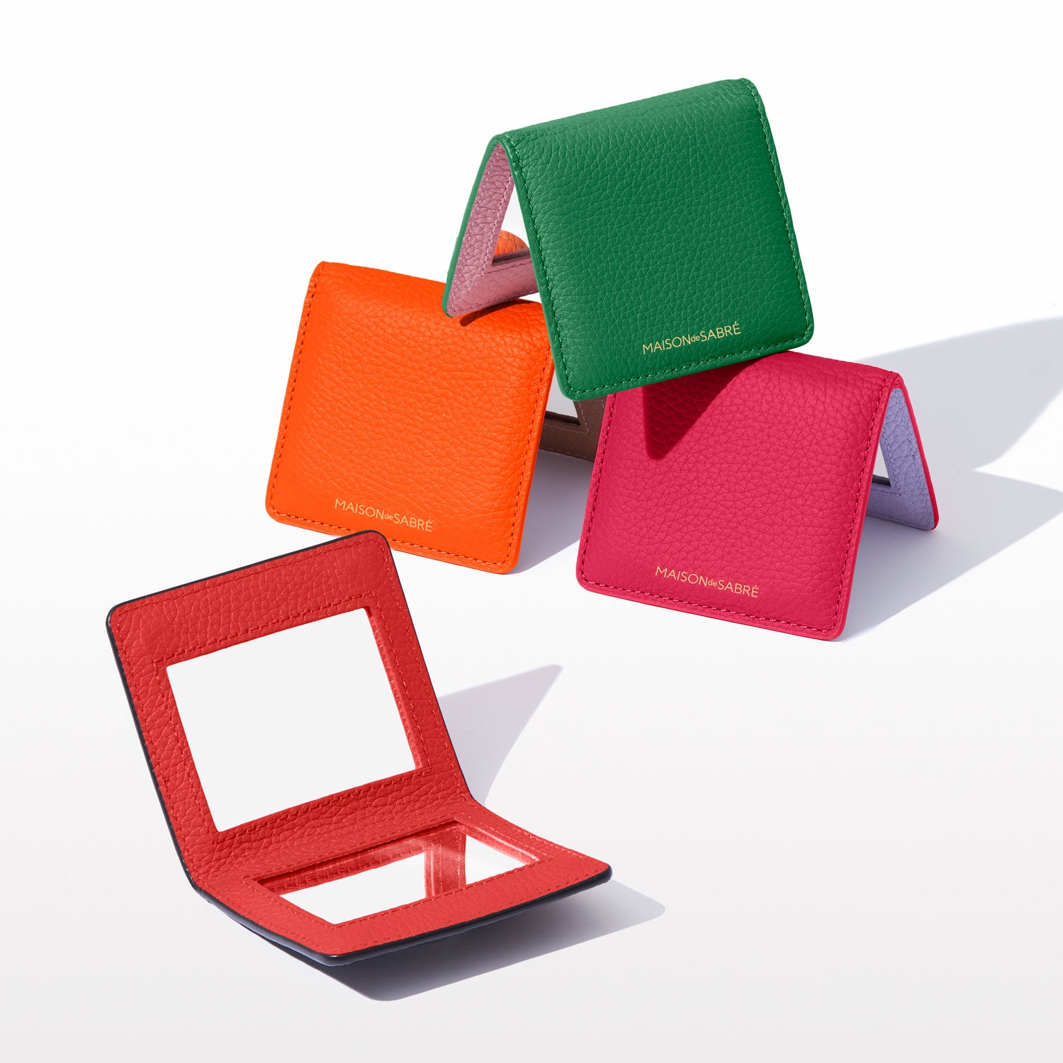 An essential on-the-go folding mirror meticulously crafted to fit into your palm and operate using a single hand. The Compact Mirror is constructed from plush full-grain DriTan™ leather and features magnetised snap closure and two internal mirrors.