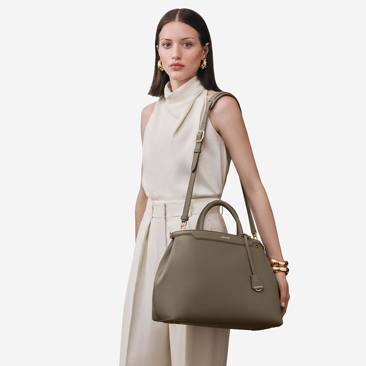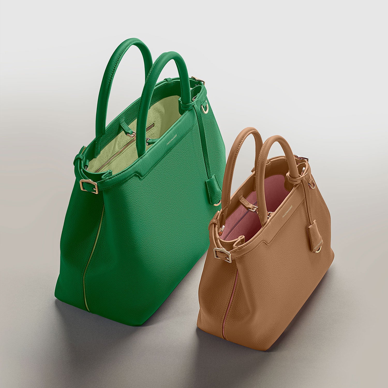 Showcasing our iconic material craft like never before, the carryall reinterprets nine signature MAISON de SABRÉ design characteristics including rolled leather carry handles, a contrast-hued mid-seam and a distinctly curved silhouette to present a sculptural flagship.