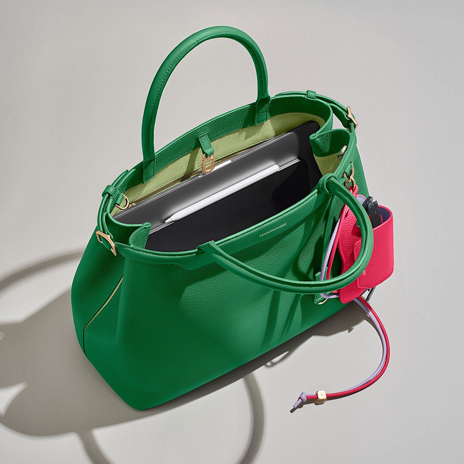 Accommodating hybrid work essentials including laptops up to 14", an iPad Pro and iPhone, the carryall is perfected for on-the-go Mark Makers. It simultaneously awes, maintaining a refined, forever composed silhouette.