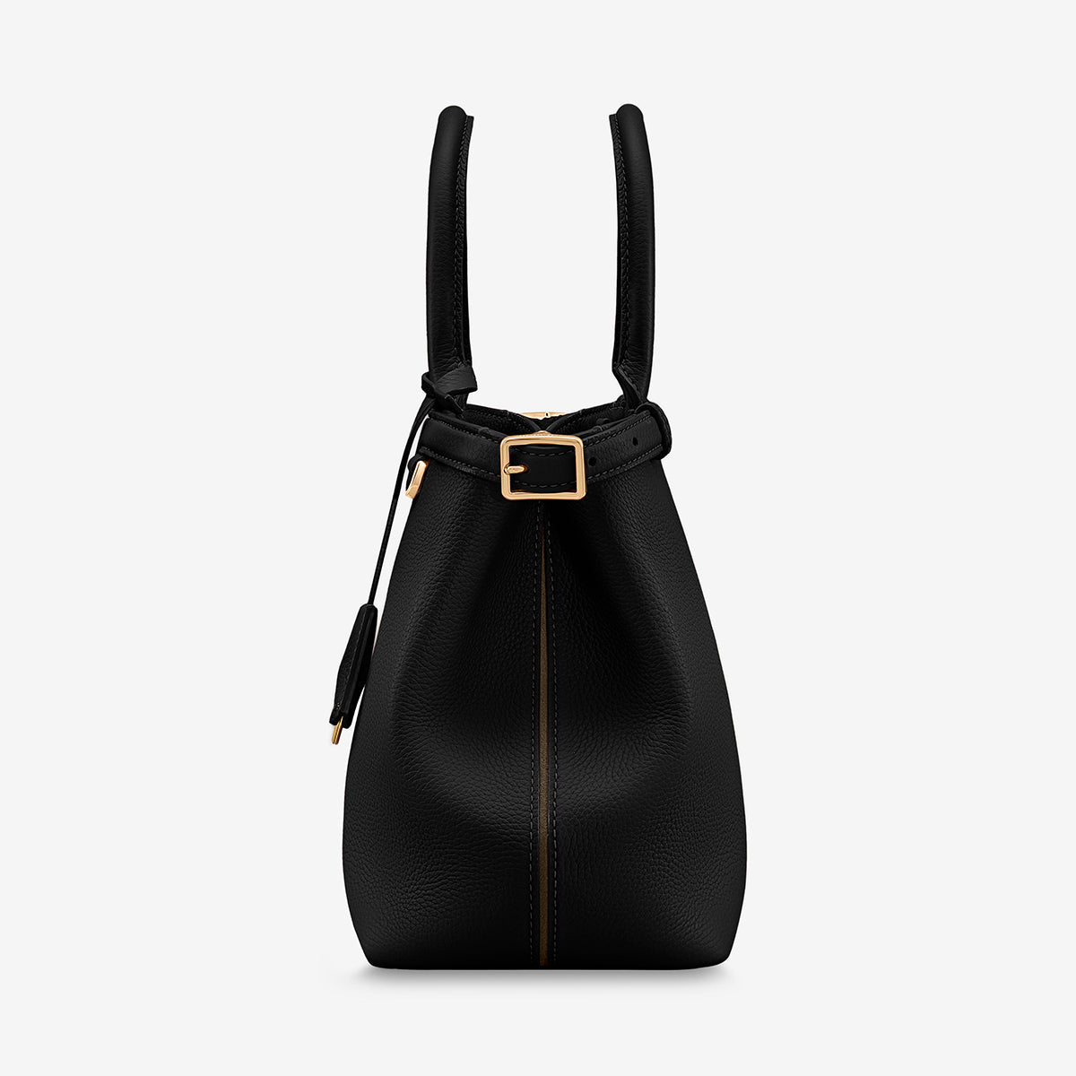 A flagship creation celebrating eight years of MAISON de SABRÉ craftsmanship, The Medium Palais embodies nine iconic brand codes handcrafted in supple calf leather that softens beautifully over time. Its fluid silhouette transports you seamlessly from brunch to gala, with adjustable belting, a secure bridge clip, rolled leather handles, a detachable crossbody strap, and contrast-hued natural suede leather lining exposed at the characteristic sideseam. A generous interior stows an iPhone Pro Max, pouches, a water bottle and daily essentials without compromising form. A SABRÉMOJI™ Charm Link allows for personalisation through signature Charms, while its elegant presence — a smaller sibling to The Large Palais — empowers every ensemble.