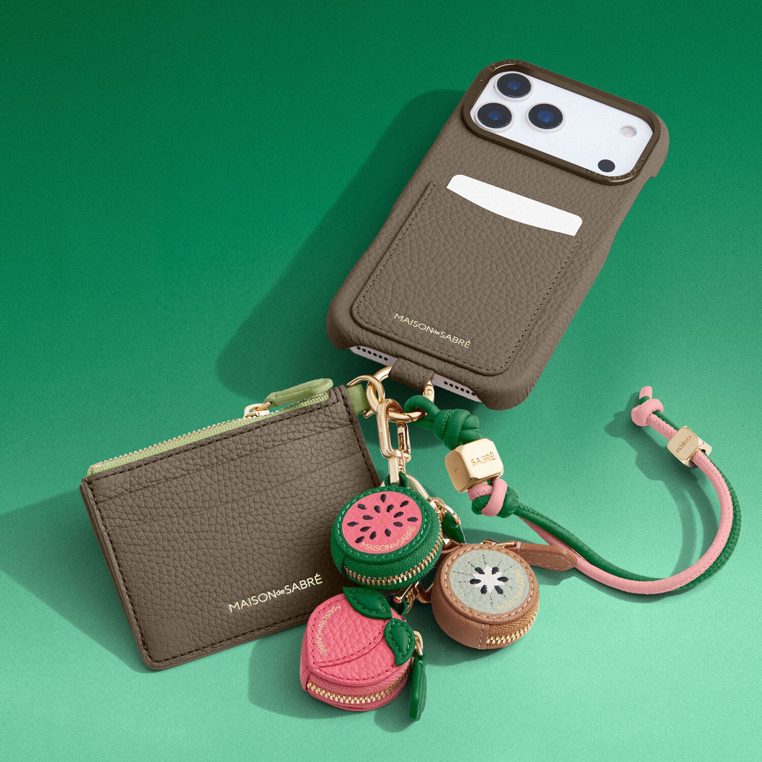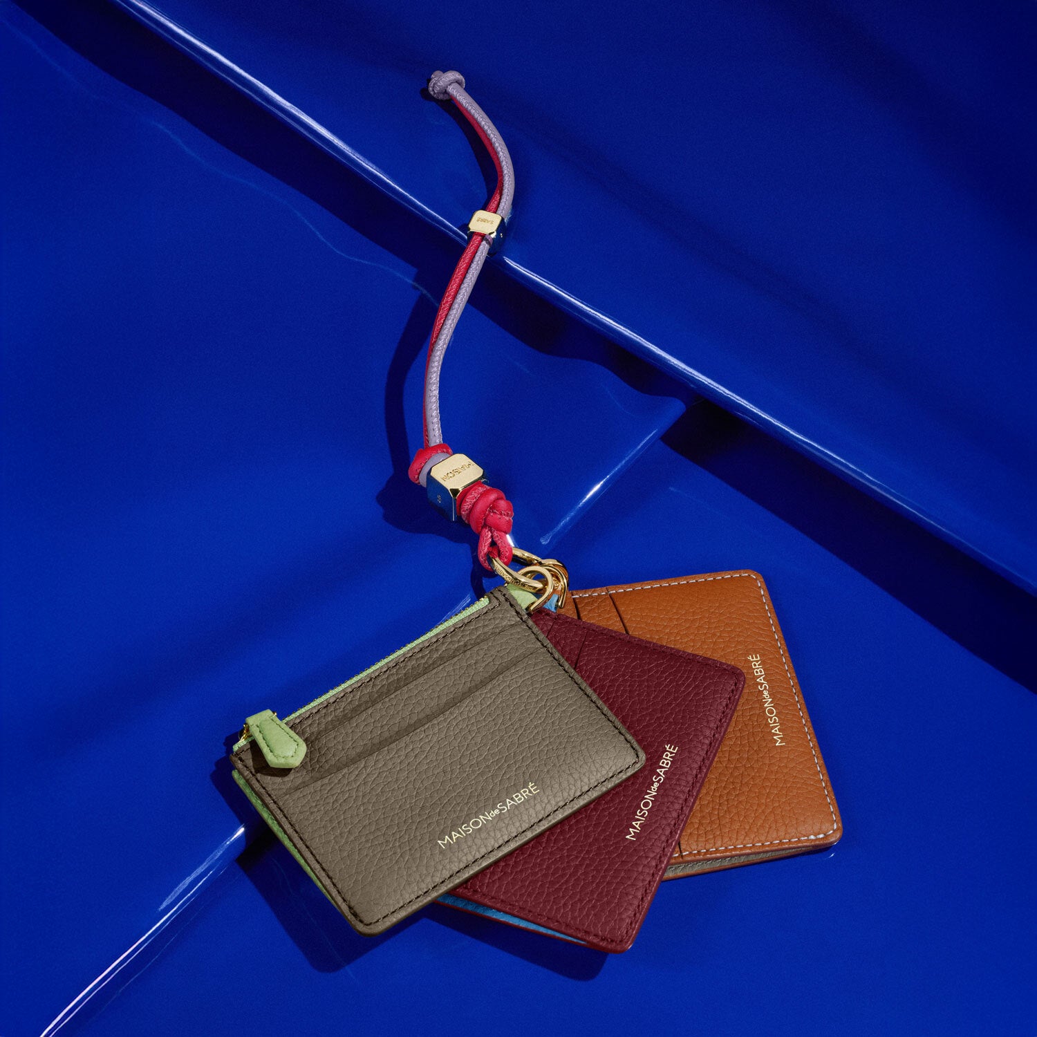 An exuberant priorities-only wallet to ensure instant on-the-go payments on every journey. Meticulously crafted with the world’s most sustainable full-grain leather, the sleek sidekick effortlessly organises the flagship Palais and additional MAISON de SABRÉ carryalls through clippable attachment to internal key leashes via a discreet D-ring. Safeguard all manners of payment via a zipped and expandable central compartment for coins and folded bills, as well as four external card slots for four priority cards at a minimum. Vibrant dual-tone colourways reflect signature design DNA — beloved across our statement carryalls — while illuminating every streamlined transaction.